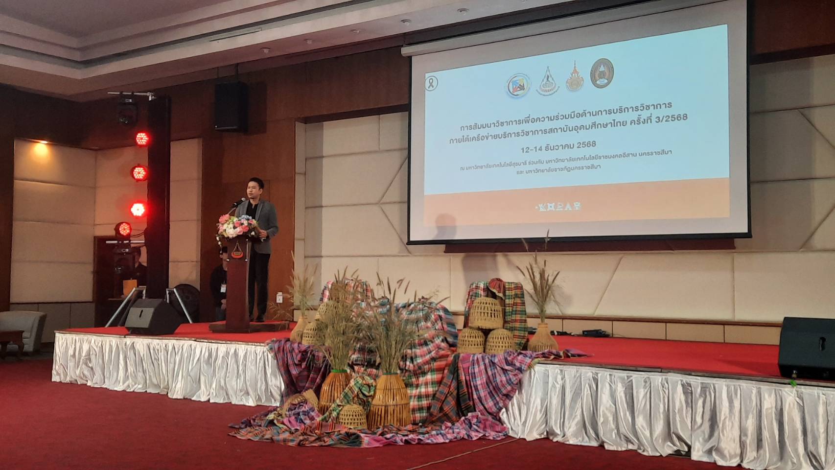 เมื่อวันที่ 12-14 ธันวาคม 2568 ผู้ช่วยศาสตราจารย์สุทธินันท์ โสตวิถี ผู้อำนวยการสำนักบริการวิชาการ มหาวิทยาลัยราชภัฏรำไพพรรณี พร้อมด้วย นางสาวณัฐธยาน์ ถวิลวงษ์ รักษาการหัวหน้าสำนักบริการวิชาการ เข้าร่วมโครงการ “สัมมนาเครือข่ายบริการวิชาการสถาบันอุดมศึกษาไทย (คบอ.) ครั้งที่ 3/2568” ซึ่งจัดขึ้นภายใต้ความร่วมมือของ 3 สถาบันเจ้าภาพ ได้แก่ มหาวิทยาลัยเทคโนโลยีสุรนารี, มหาวิทยาลัยเทคโนโลยีราชมงคลอีสาน นครราชสีมา และมหาวิทยาลัยราชภัฏนครราชสีมา ณ จังหวัดนครราชสีมา การสัมมนาในครั้งนี้มีวัตถุประสงค์เพื่อสร้างความเข้มแข็งให้กับเครือข่ายบริการวิชาการของสถาบันอุดมศึกษาไทย โดยในพิธีเปิดได้รับเกียรติจากอธิการบดีของทั้ง 3 สถาบันเจ้าภาพร่วมกล่าวต้อนรับ และมีการประชุมตามระเบียบวาระเครือข่ายฯ โดย ผศ.ดร.จุมพล ชื่นจิตต์ศิริ ประธานเครือข่าย คบอ.